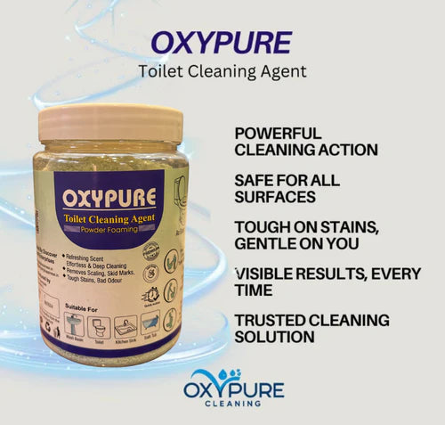 👉 OxyPure Toilet Cleaning Agent features a powerful antibacterial formula that eliminates 99.9% of germs while effectively removing tough stains, limescale, and odors. It is eco-friendly and safe for all types of toilet surfaces.